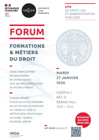 L’UFR de droit, AES et administration publique organise le 27 janvier le forum "Formations et métiers du droit" à Caen.